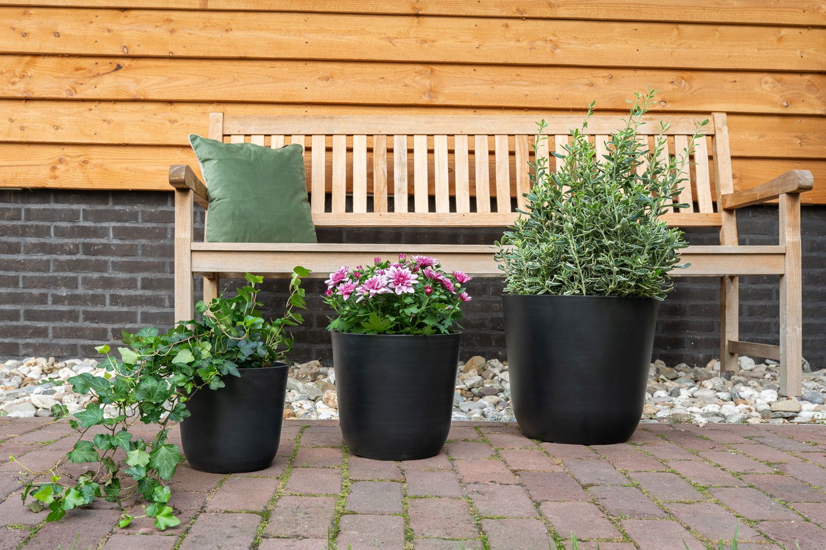 Prêt pour l'avenir, prêt pour tous les types de jardins et d'intérieur. Ce pot de fleurs moderne en plastique recyclé à 100 % est enthousiaste. Simple et intemporel avec une touche contemporaine. Palermo est super léger, résistant à toutes les conditions météorologiques et très solide. Le design convivial associe des formes rondes à des lignes épurées. Tout aussi agréable pour les yeux que pour les plantes et l'environnement.