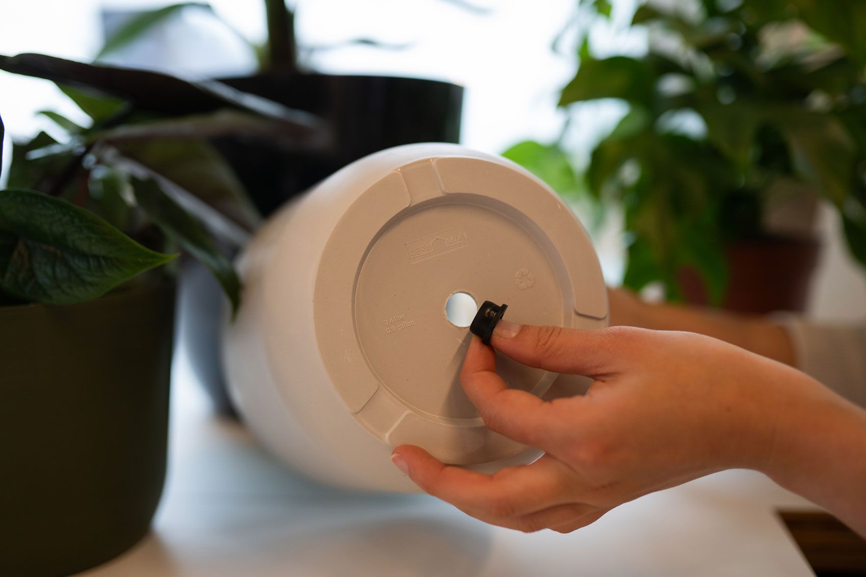 Vous utilisez le pot Palermo à l'intérieur ? Veillez à ce que le bouchon soit bien enfoncé dans le fond et faites attention lors de l'arrosage. Avant de placer un pot Palermo à l'extérieur, retirez toujours le bouchon du fond. Cela permet à l'eau excédentaire de s'écouler, protège la plante de la pourriture des racines et rend le pot résistant au gel. Conservez bien le bouchon. Vous pouvez ensuite placer la plante à l'intérieur en hiver si vous le souhaitez.